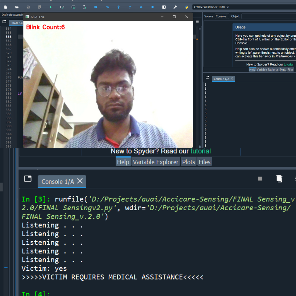 Once an accident is sensed, Accicare SEES the status of the driver and passengers using computer vision. Accicare calls for help if there is