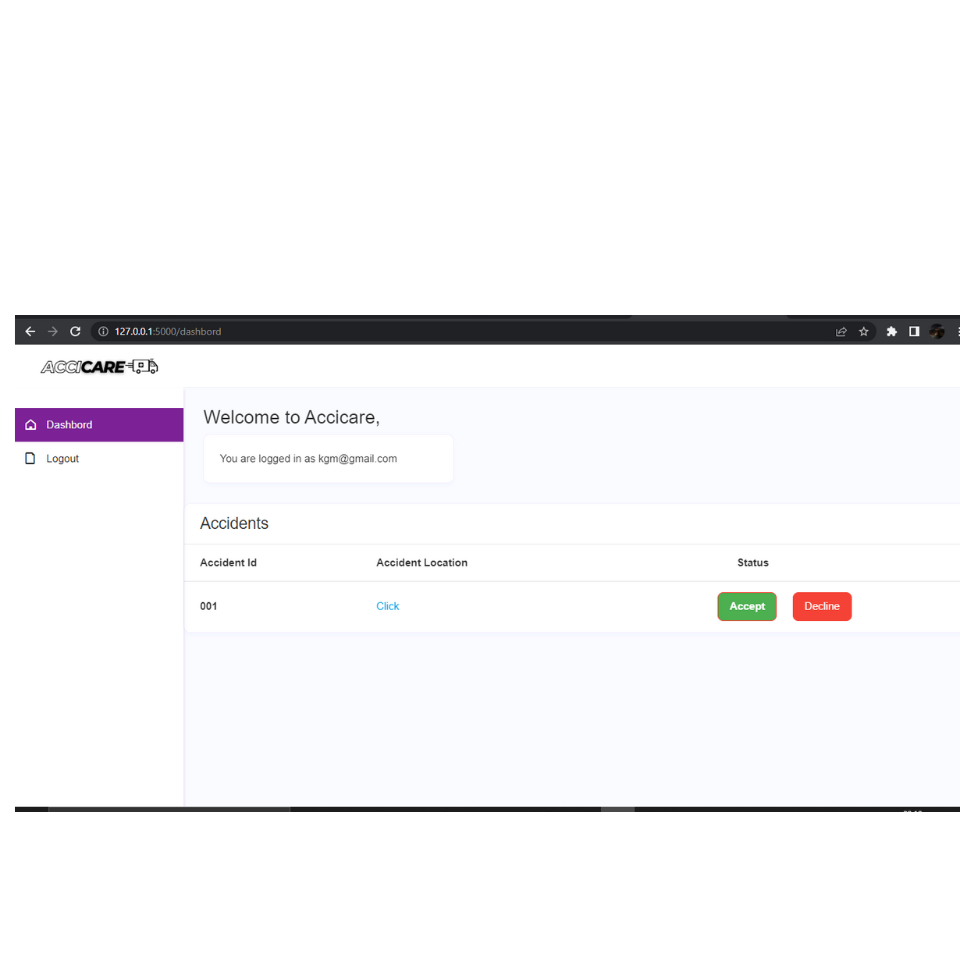 Accicare takes all these vital information from the accident zone along with the location and SHARES it with all the hospitals in a 5km radius so they can send immediate medical 🏥 help